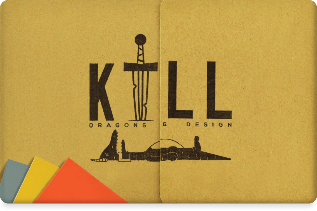 “KILL: Dragons & Designs” is a hand made portfolio built with the potential to add proceeding bodies of work. Covering one semester’s worth of design classes, the portfolio serves to guide the viewer forward and pass on what I have learned. The left portions of the page serve to show the work and the right contains my reactions post creation. Also complete with matching set of process books and table display tag. The set functions with travel and table display on mind.